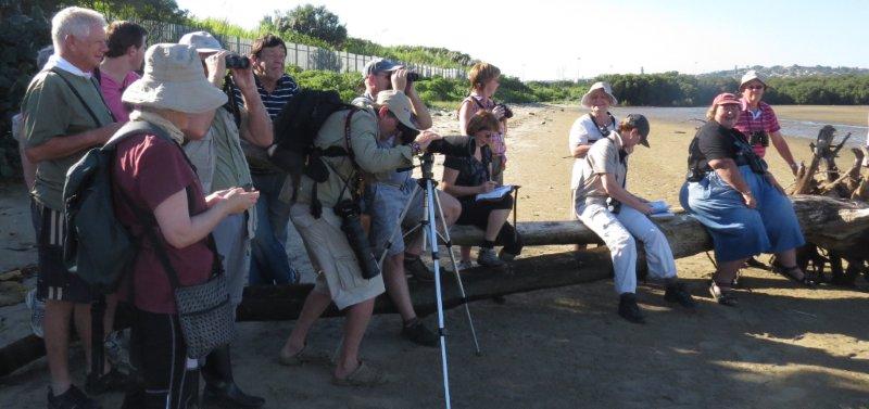 birders on log