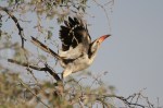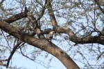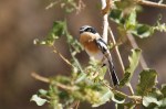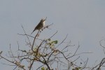 As we enjoyed the sighting we noticed a group of birds further back – a Common Fiscal was chasing off the others. Amongst them were Mountain Wheatears and another pair – one of which eventually perched in a bare tree. The scope was already out and on to him in a shot –  white eyebrow, russet rump – Herero Chat!! We had good viewings but it scarpered as I tried to get closer for a decent photo.