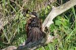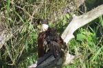 On the first afternoon after setting up our camp we headed for a walk on the beach. We were surprised by a Palmnut Vulture which flew over our heads and landed on the inland side of the beach at the mouth of LakeSt. Lucia. We approached slowly watching it nibbling on the base of some of the spindly grass protruding from the muddy edges of the lake – managing to get with 15 metres of it. An unexpected waterbird!