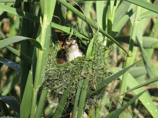 Tawny-flanked Prinia nest building
