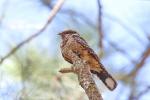 It was midday. The bird flew up from the ground into a nearby tree lying along a horizontal branch – Europen Nightjars style.