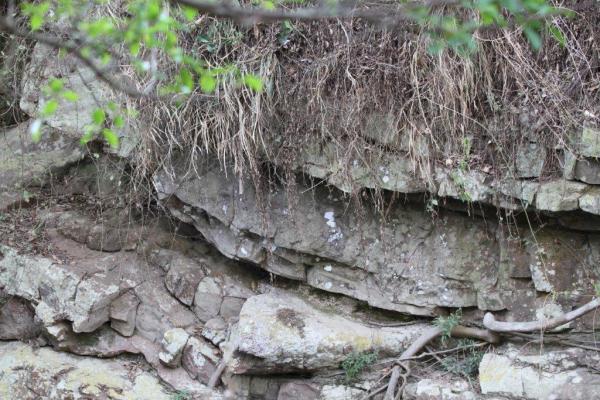 Mountain Wagtail nest site under top overhang below overhanging grass (1)