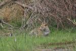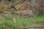 Then from below the Fish-Eagle out stepped a Leopard. Peering cautiously around, it stepped out to the water’s edge. Every now and then looking our way – even when it was drinking. marvellous sight.