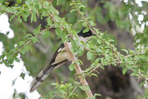 Lesser Striped & Barn Swallows, Palm, White-rumped and Little Swifts plus a few Black Saw-wings. Good views of a Rufous-naped Lark, Fan-tailed Widows, Burchell’s Coucal by the dam, Brown-hooded Kingfishers and lovely views of Yellow-throated Longclaws. And a contentious Cuckoo on the horizon. For some a Red-chested, others a Klaas’s but wethinks otherwise – see what you think from the picture below.