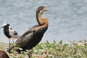 African Darter and White-breasted Cormorant enjoying the pleasures of life