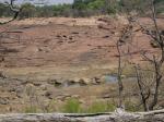 With the air-conditioning full blast it was more pleasant to be in the car than the camp. Both afternoons we drove down along the river to visit the hide. There was some water in the river and at one point we observed the carcass of a buffalo near the water’s edge – being guarded by a number of crocodiles whilst vultures hung around waiting for their chance.