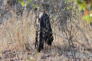 a Civet in broad daylight unconcernedly foraging right next to us. It had a sore back right leg and was limping. This was the only lifer that either of us had on our trip. As we watched we did not notice an elephant approaching directly towards us from the other side until it was just metres away. Mega hasty retreat was called for – adrenalin does wonders to focus you.