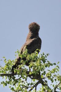 An amazing hairstyle of an African Paradise-Flycatcher and an Afro-styled Brown Snake-Eagle in Punda Maria.