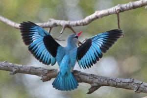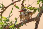 Woodland Kingfisher – all mouth as it tries to scare off a Broad-billed Roller