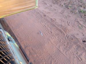 A trench for cables extended the first 4 kms- along the S91- from the main road towards the camp. On several occasions we came across elephants trying to get across without success – fortunately for us they were on the other side of it.