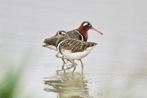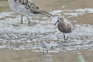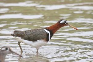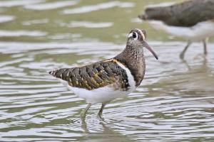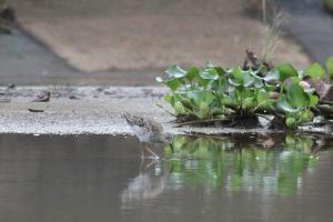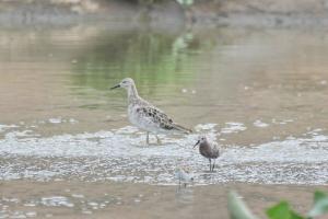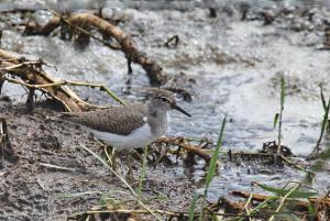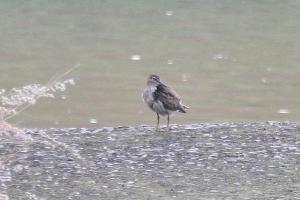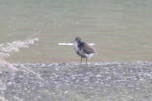 Without a scope, we struggled long and hard over this wader. The very dark patch on its left shoulder was quite confusing. It crossed our minds that it could have been a Green Sandpiper.
