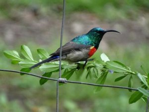 As I had been to the bay on Friday and was aware that low tide was very very low and high tide not much better we decided to do the Boardwalk first and check out the Black Sparrowhawks nest. It was in amongst the mangroves that some of us were lucky enough to see the Black-throated Wattle-eye. We also went along to the grasslands – which seem to be fast disappearing under the ever encroaching Chrysanthemoides and Brachylaena. It was here that we saw a lot of Amethyst Sunbirds, mainly females and and juveniles. Little Bee-eaters and lots and lots of Bronze Mannikins and Cape White-eyes.