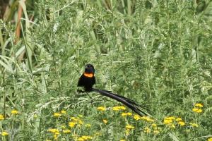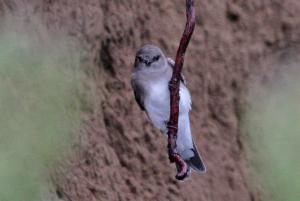 We then went to see if the White-fronted Bee-eater roost still existed at the Little Tugela (one km. off the Winterton road along the D57). Their roost was overgrown. However, Brown-throated Martins had established a roost in the sandbanks along both sides of the road as we approached the bridge. On the other side of the bridge we chased an Orange-breasted Waxbill and White-winged Widowbirds to get photos – no great success.