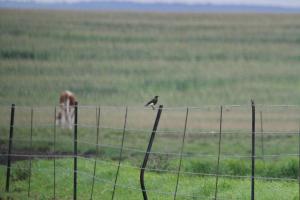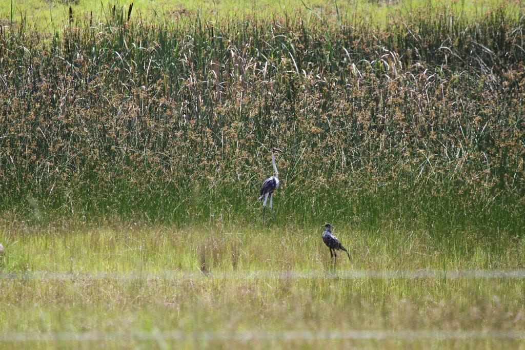 After another kilometre we came to a large cattle ranch – birds every which way – all 4 species of Ibis, Pied Starlings, Queleas, Black Crows, White-necked Ravens, Steppe and Jackal Buzzards, Amur Falcons, hundreds of White-faced Ducks in the dam, Red-billed Teals, Yellow-billed Ducks, Common Sandpiper, Three-banded Plovers, Blacksmith Lapwings, Rufous-naped and Red-capped Larks, Cape Longclaw, Black-headed heron, Cattle Egret, Egyptian and Spur-winged Geese, South African Cliff-Swallows, Barn and White-throated Swallows, Southern Grey-headed Sparrows, Cape and African Pied Wagtails. Wow.
