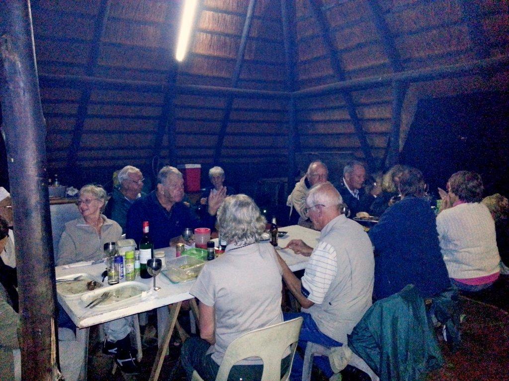 Friday night we braaied in the resort’s covered braai area. The program was set – quite a convivial evening despite the drizzle.