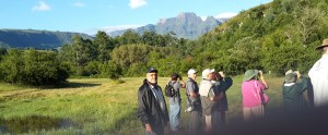That evening we gathered at the Dragon Peaks braai boma – did our bird list – some 150 different species. Then as asked, each person presented an interesting or unusual fact about birds. The effort everyone went into to research something different was amazing. In the end a bottle of red wine went to Paddy for his info on the behaviour of Sooty Terns which scoop up a mouthful of sea water on their return to the roost. This they deposit on grass eventually killing it. The dried grass is then used in nest building.
