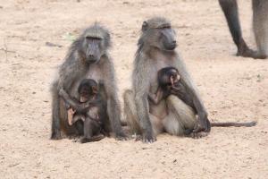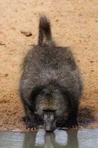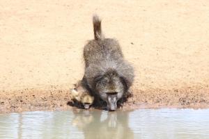 We spent quite a few hours at the kuMasinga Hide each day. The birding was best here and there was a constant stream of Nyala, Zebra, Wildebeest, Warthogs, Impala, Baboons and an occasional Kudu. Playful Baboons came for water and then played all round the hide. A few even ventured onto the roof of the hide and ran back and forth slip sliding as they went.