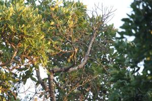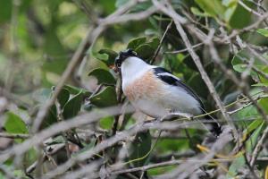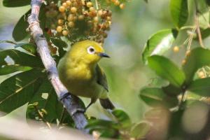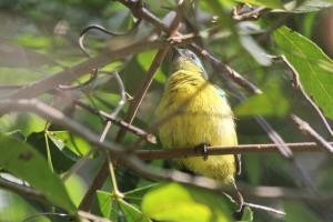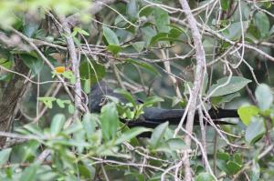The first morning bird walk got off to a fantastic start with birds flying back and forth around the entrance gate to the lodge. Black-throated Wattle-eyes, Ashy and Grey Tit-Flycatchers, Sombre Greenbuls, Square-tailed Drongos and a Green Malkoha amongst them. Further along we saw African Yellow White-eyes, Woodward’s Batis, Blue-mantled Crested-Flycatchers and an Olive Bushshrike which tested our skills to ID it – see photos. On the way back we encountered a shy White-starred Robin and several others were heard during the course of our stay.