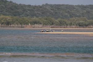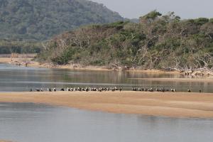 On the beach we relaxed while the others were fishing. An African Fish-Eagle and an Osprey flew overhead. Three Grey-headed gulls passed over us hoping for some titbits no doubt. Other than that there were about 60 White-breasted Cormorants which came fishing each morning. A Giant Kingfisher was vociferous as it flew by each day and a sole White-fronted Plover was seen. Cattle took to the sand when the tide was out accompanied by Cattle Egrets.