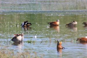 The bird life was great. We managed to see numerous African Pygmy Geese and White-backed Ducks – sometimes together. Even a family of four African Pygmy Geese in a tree.