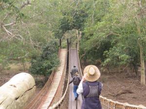 The next morning we went with Patrick to the Fig Forest. It was the first time in weeks that the Fig Forest was open so we were very fortunate. New swing bridges greeted us and another treat was the Lookout Tower in the Fig Forest – standing some 10 metres tall in the canopy of the surrounding trees. Apparently this has been there for 5 years.