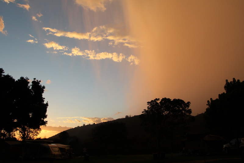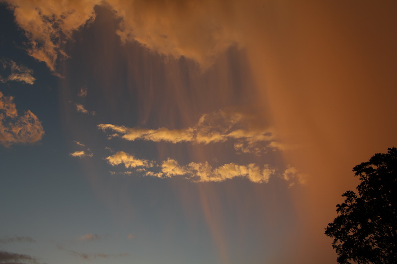 The evening before we left, the clouds above developed a red glow with a straight band of red moving towards the sea. Strange and interesting. Out came the camera to capture the picture. Then no sooner than the pictures were taken the sky opened with rain and hail. We had to move fast to get everything under cover.