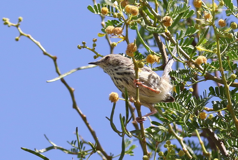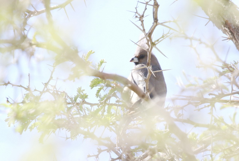 Back at the cottage we luxuriate on the patio and spend the afternoon spotting from there. The nearby trees were constantly being visited by birds all day long – even in the middle of the day. There were Pririt Batis, Fairy Flycatchers, Namaqua Warbler, Karoo Scrub-Robin, White-backed Mousebird, Karoo Prinia, Cape Bulbul, Cape Spurfowl and most entertaining a gang of White-throated Canaries with their huge beaks almost the size of their heads.