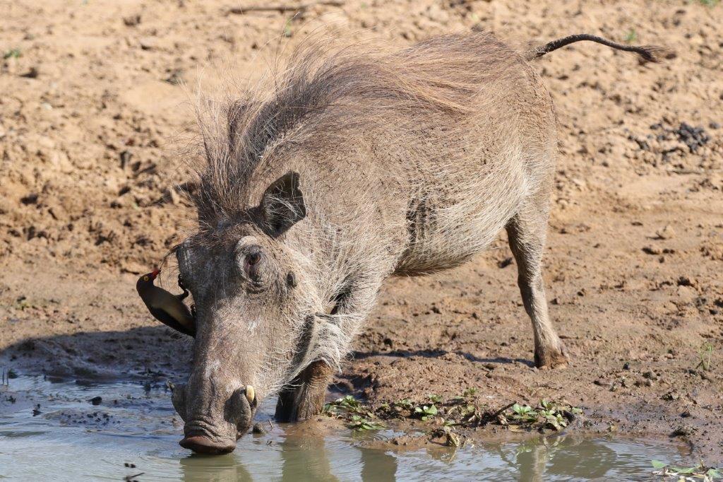 We only saw a few Red-billed Oxpeckers as we drove arount the Reserve – where had they all gone? We soon found out at kuMasinga Hide. There they all seemed to be waiting for lunch. As the different animals arrived for a drink they all appeared to descend on their backs, legs, ears, noses, underneath with as many as 20 on one animal.
