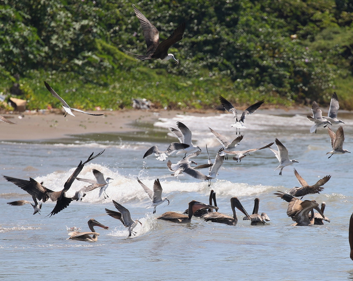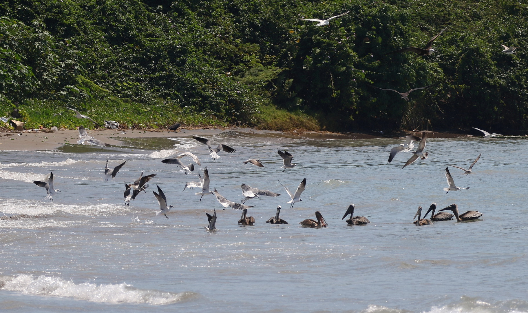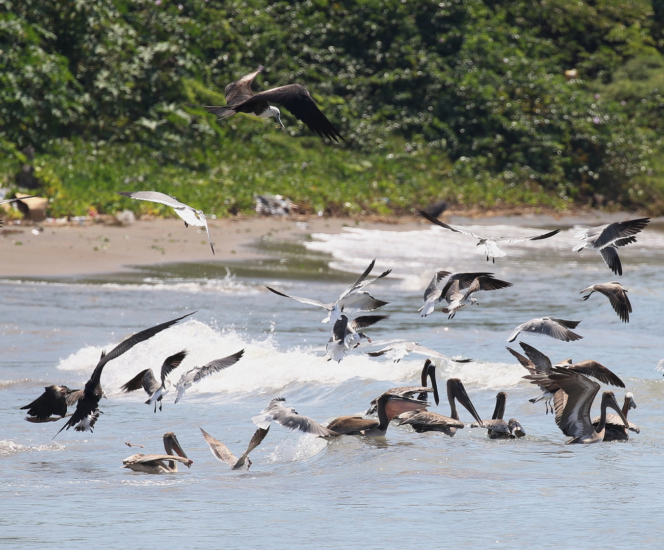 On our final night we found another beach front restaurant to have dinner, enjoy the sunset and the birds. Whenever we were close to the sea 2 birds always seemed to be present – the Magnificient Frigatebird and the Brown Pelican. The former aloof and the latter up to its fishing antics – much like a Gannet but on a 45% glide angle coming to a sudden stop as its beak went below water.