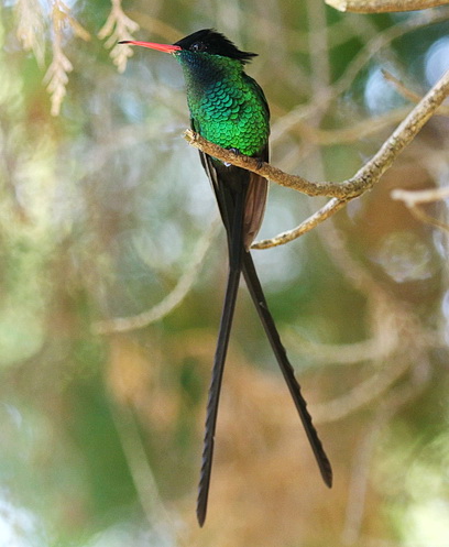 We arrived in Montego Bay and spent a day there recovering from the long journey prior to the start of the week’s serious birding. The hotel grounds got us into the birding mode with many new species for us to identify. Among those was the Red-billed Streamertail. He was very obliging and we could approach within a metre before he got nervous and flew. He had his perches so we were able to study him closely.