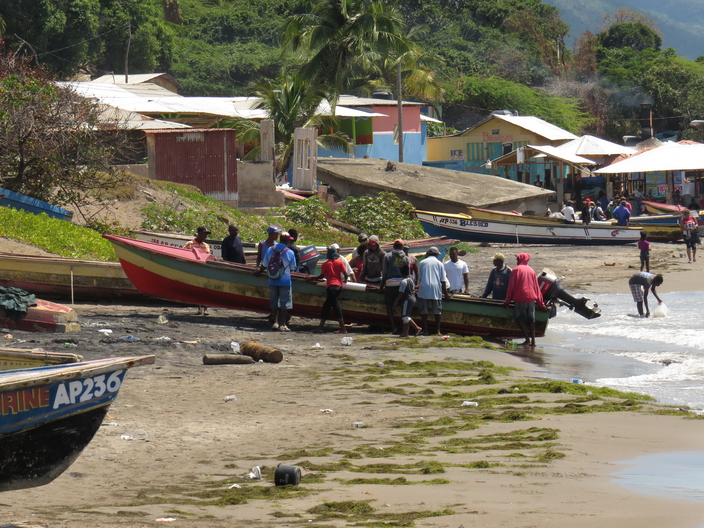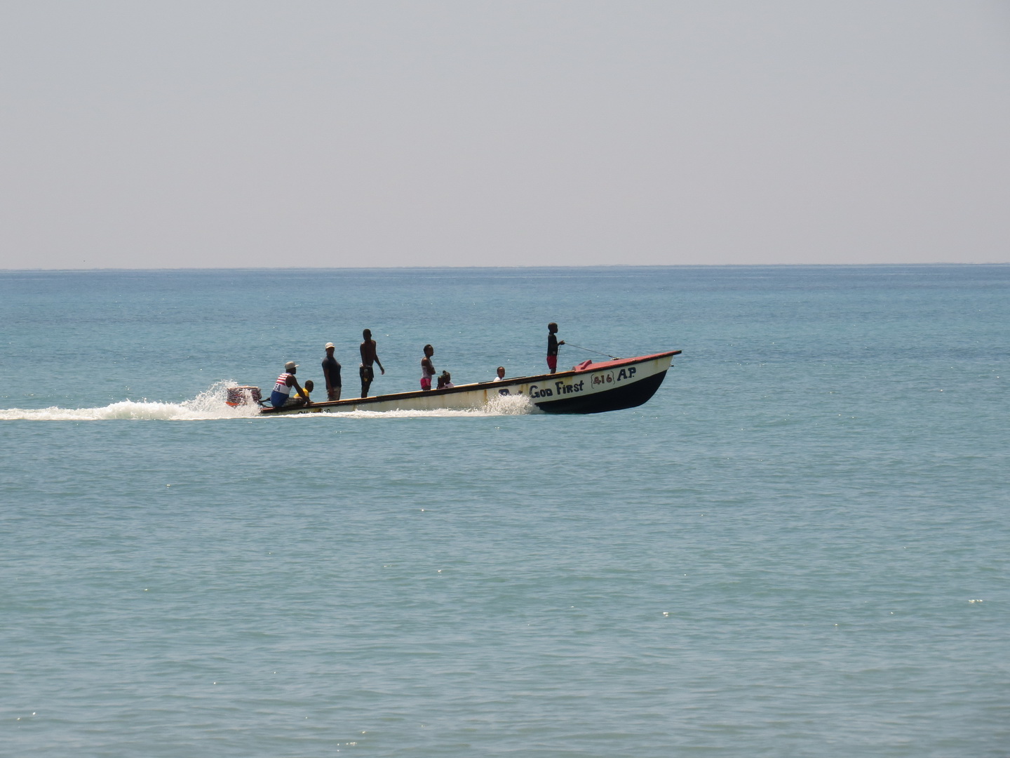 On to Alligator Pond. And to a highly rated restaurant – Little Ochie. Arriving early we had a drink on the beach and watched all the fishermen returning in their motorised fishing canoes. As each boat arrived many people descended on it and the haggling began. Not only was it interesting to watch but it brought a numerous sea birds with it – Magnificent Frigatebirds, Brown Pelicans, Terns and Gulls.