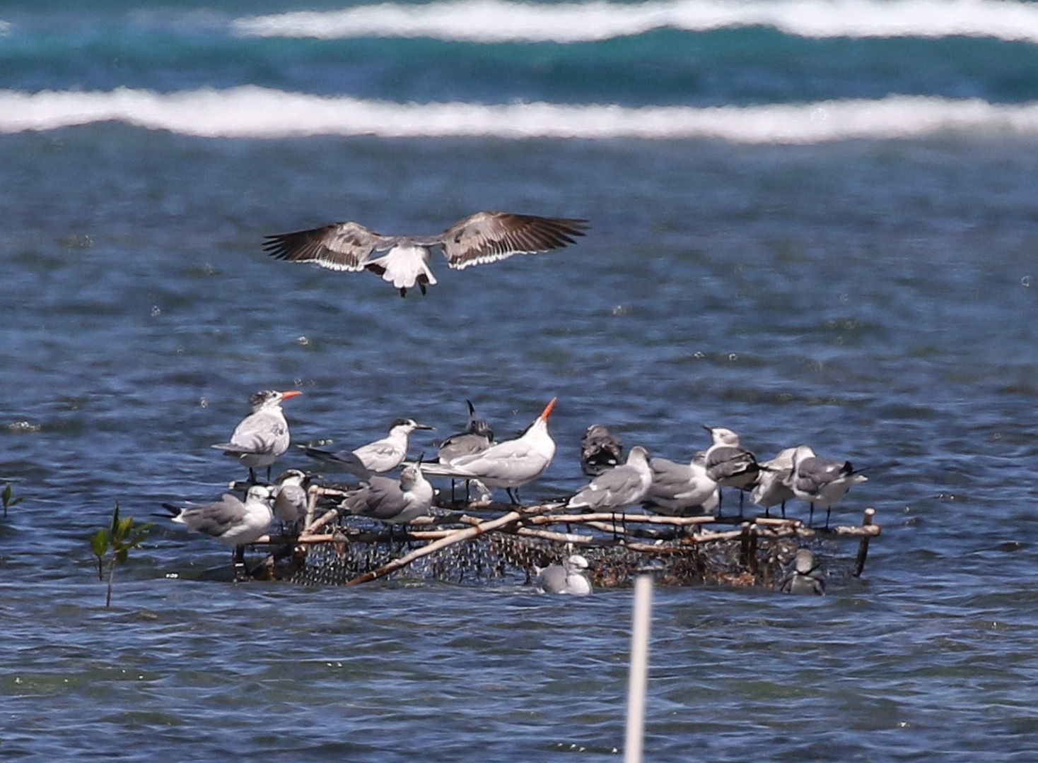 Lunch and dinner were had at Mammee Bay beach – we were able to enter as we stayed at a house in that complex. A bay I used to visit with fond memories and it did not disappoint. There were a variety of seabirds to challenge us and some obligingly sat on a distant fish pot to test our skills.