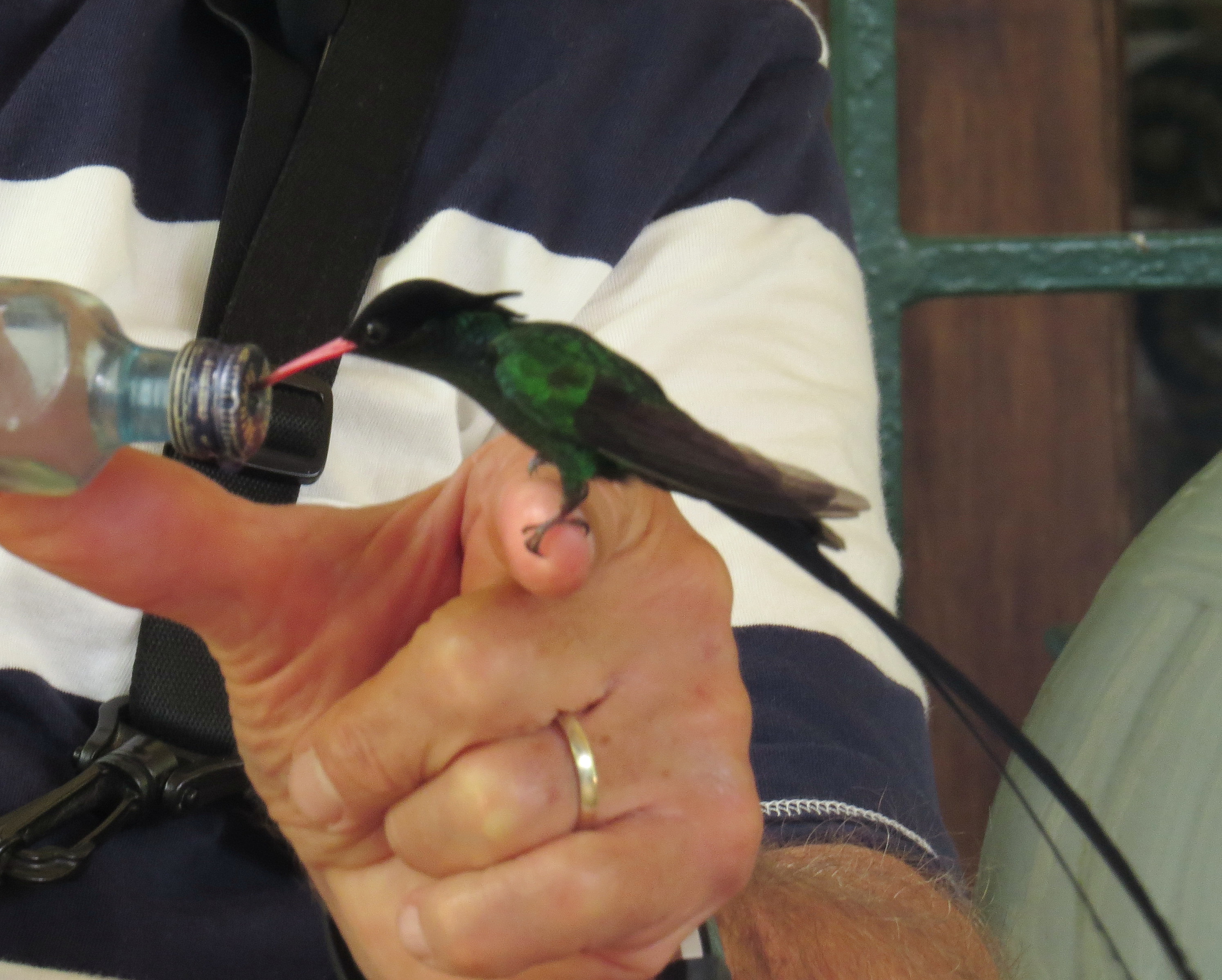 On arrival a Vervain Hummingbird greeted us – hovering in the flowers at the entrance.