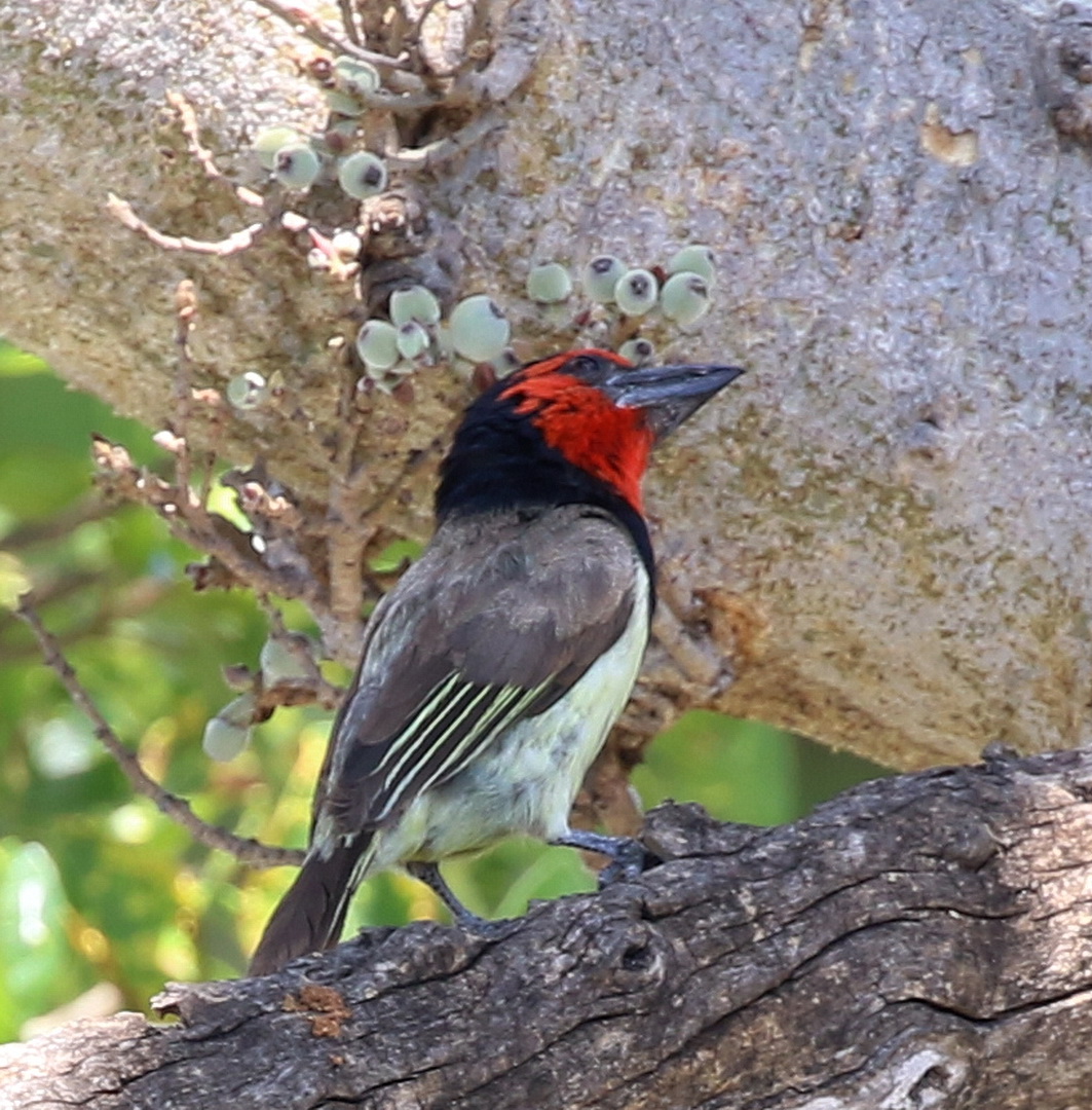 On our first day we went to the Bird Hide on the S28. It was here that my bird expert, Sally, spotted a bird nearby with a pink bill. She called me over to see the Greater Honeyguide. Fascinating as four more turned up. It was only then that we realised we had made a big booboo. See photo below.