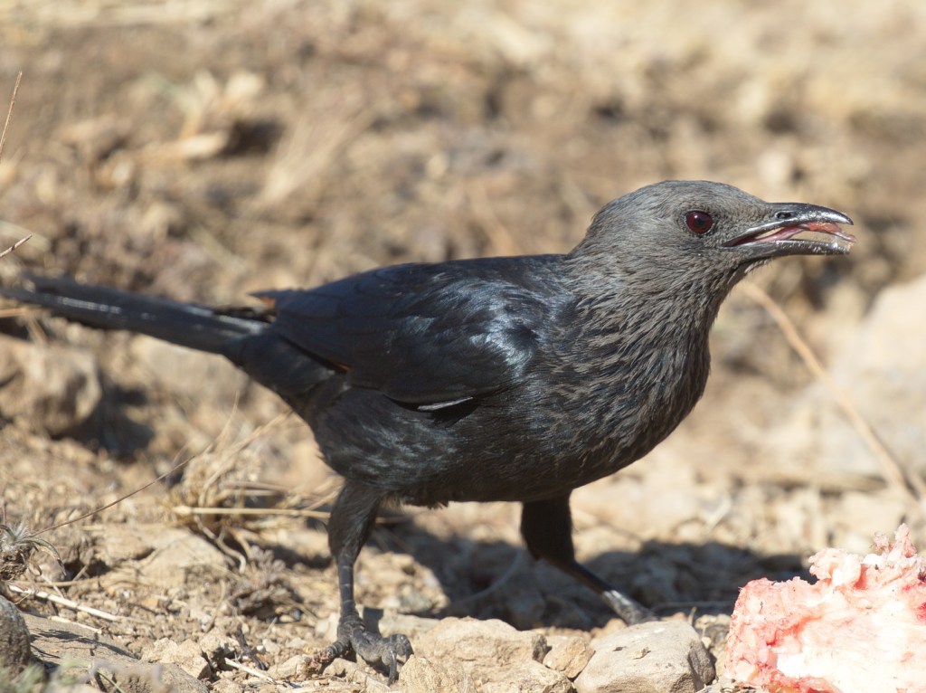Red-winged Starlings and the White-necked Ravens were the predominant species waiting and attacking the bones as they were laid out. No signs of Vultures on this splendidly sunny day.
