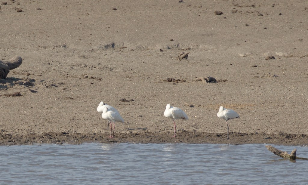 Grootvlei Dam is off the beaten track – one of those places we like to visit. Here we saw a Grey Heron flying over, African Spoonbills, Curlew Sandpipers, African Pied Wagtails, an African Spoonbill between an African Openbill and a Yellow-billed Stork.