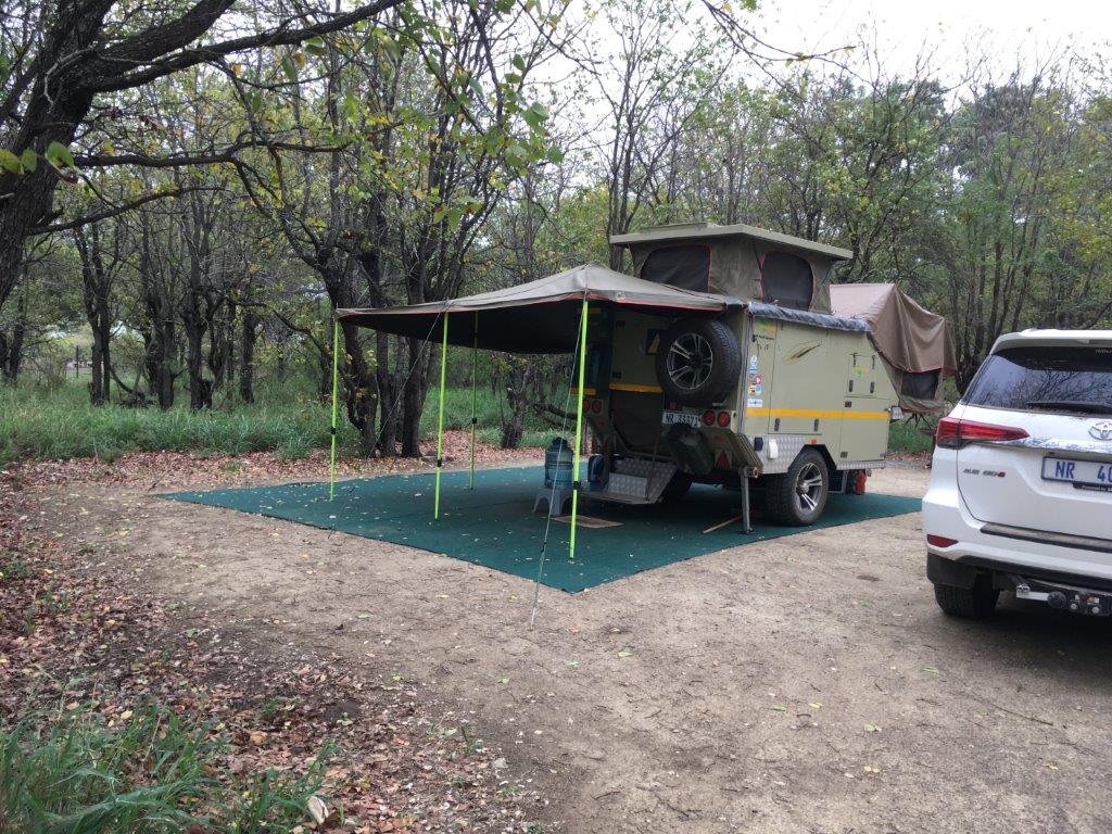 The camp is right next door to the Mooiplaas picnic site and about 8 kms from Mopani where check-in takes place. It is possible to pre-book a campsite we are told and we would argue that some of the best sites are Numbers, 1,14,17,18 22, and 25. However much depends on whether you need sun for your solar panels. Some sites are large and suitable for 2 or 3 off-road trailers or caravans.