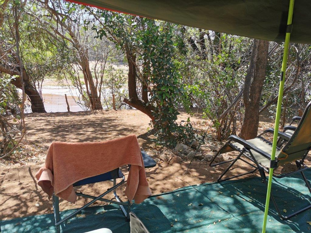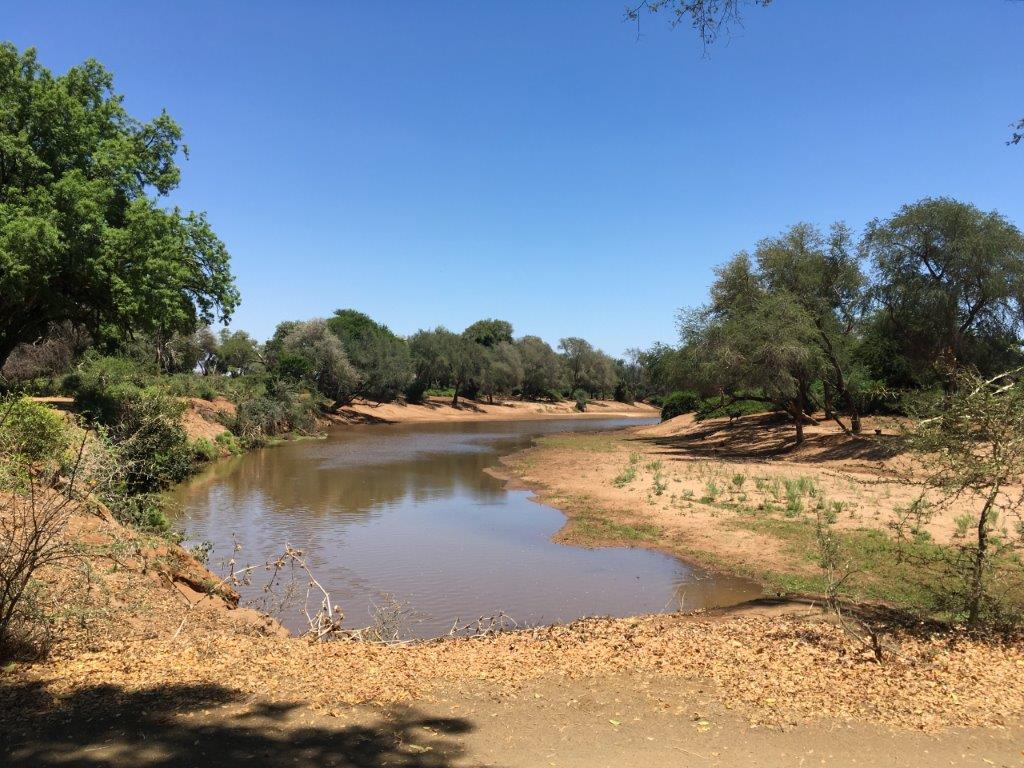 The campsite was right on the river bank and surrounded by trees – much like the setting at Pafuri picnic site. The entry was down a steep slope with a sharp turn to the right. Facilities in our camp included our own Ablutions with hot water and a kitchen fully equipped but without a fridge. No electric power but a donkey boiler. And a great river view.