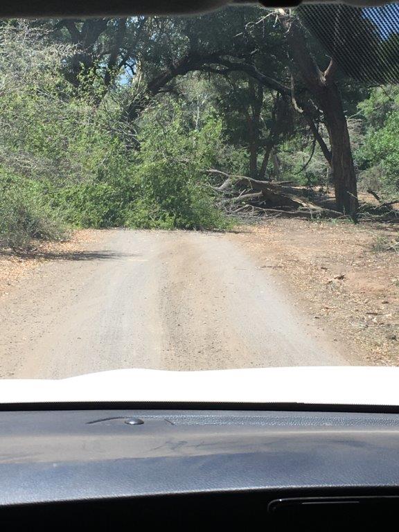 The drive between the bridge to Crooks Corner is always variable and interesting. The riverside trees are massive and full of life. No sooner had we turned off the S63 heading for Crooks Corner we ran into a road block – a tree had fallen across the road and we had to find a way around it. We looked for Lemon-breasted Canaries in the palms but probably it was too dry for them.