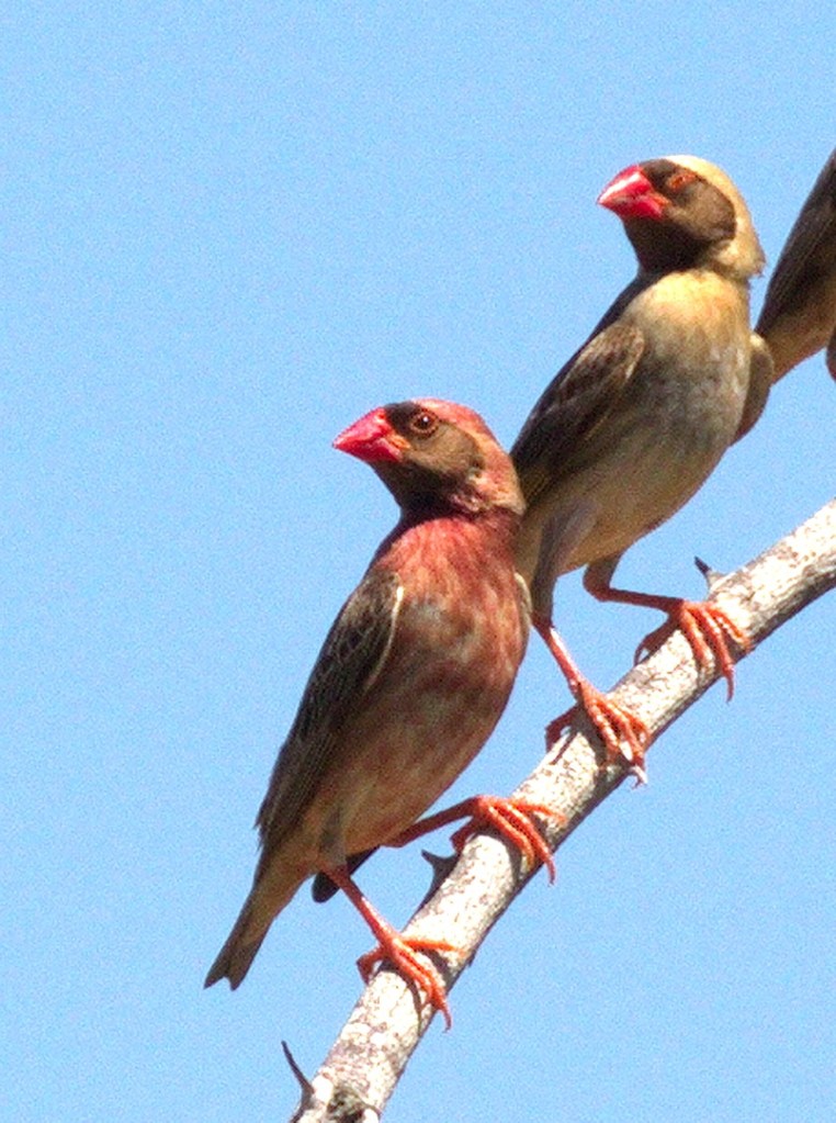 Then the Red-billed Queleas arrived – some more brightly coloured than others. One even looked like a red Red-billed Quelea.