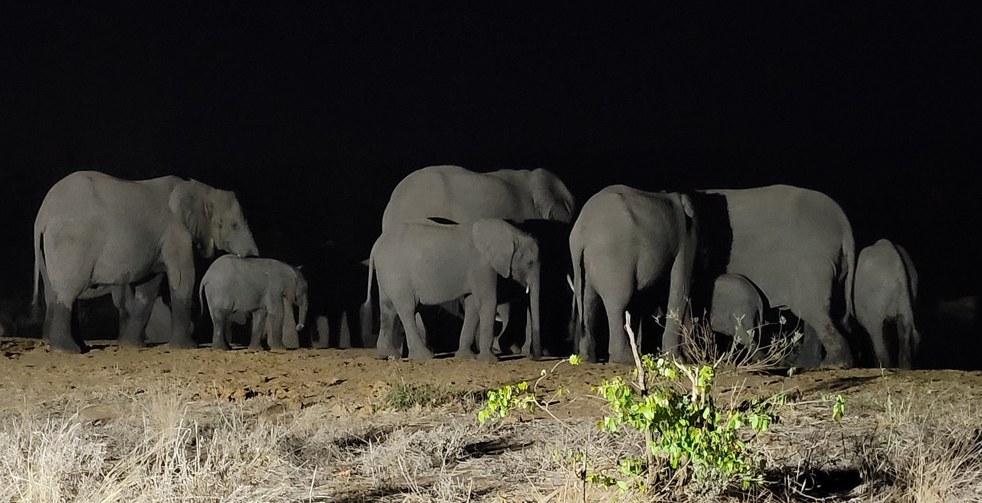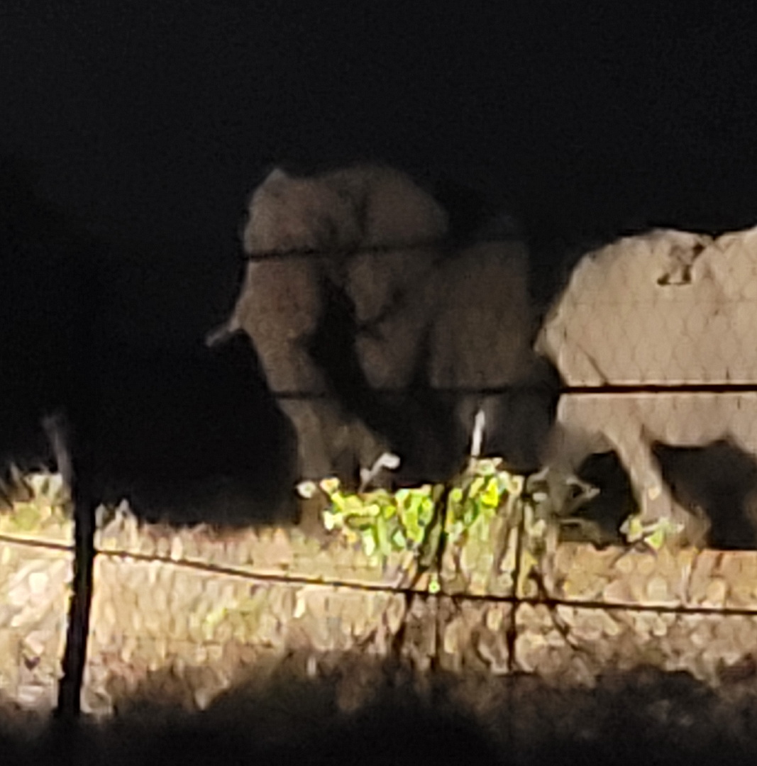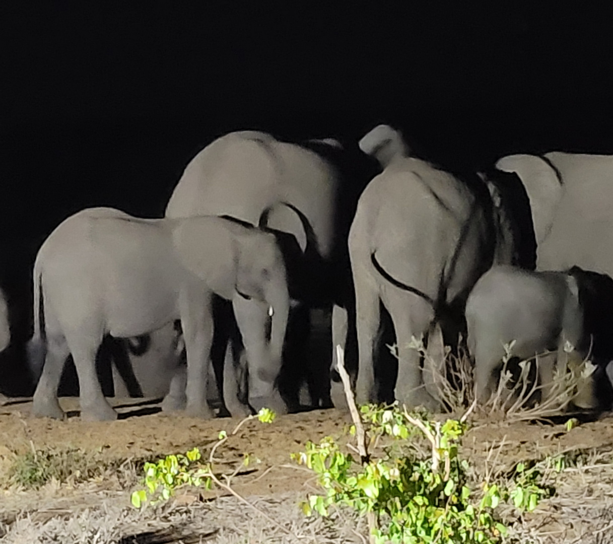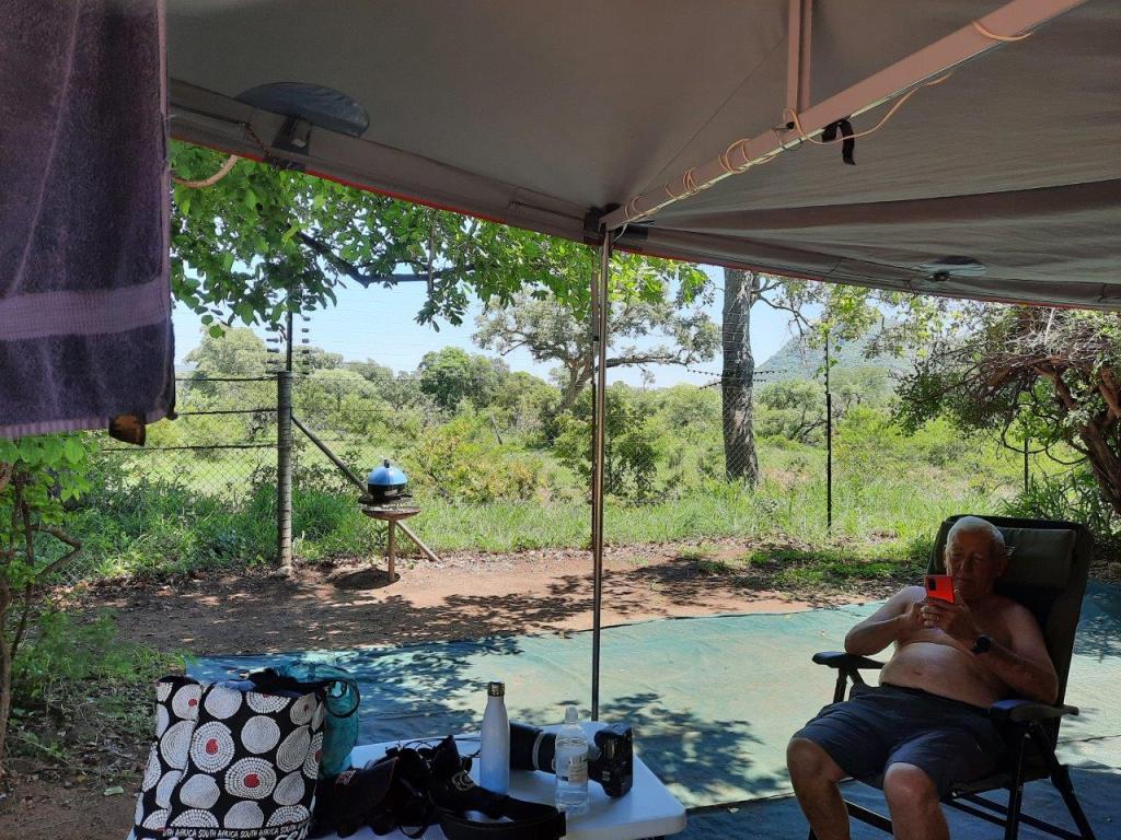 Tasha and Dick arrived a day before us. The campsite was overflowing. It was an Honorary Rangers get together that weekend. When we arrived the next day the place was relatively empty and my sister had found us a site right on the fence – where an elephant liked to visit. With other game popping by including a tame Bushbuck which walked up to our front door.