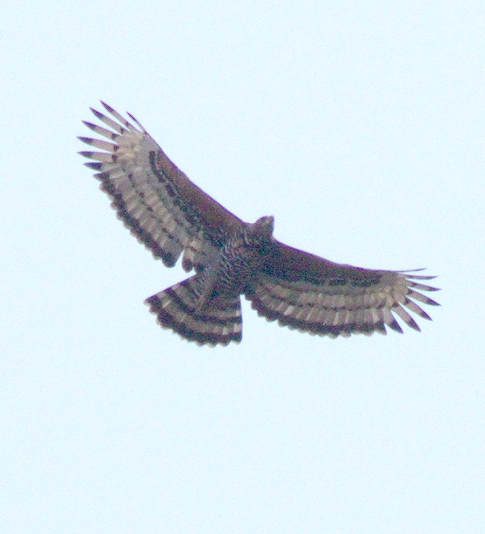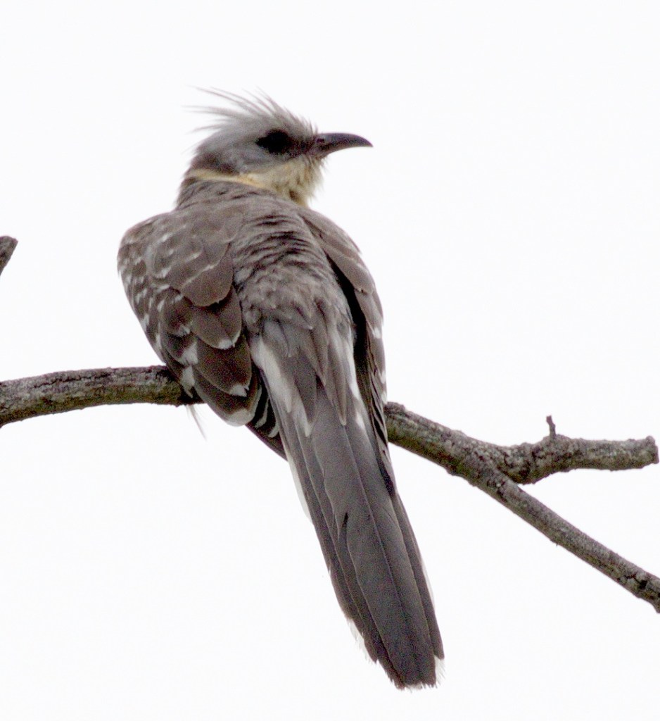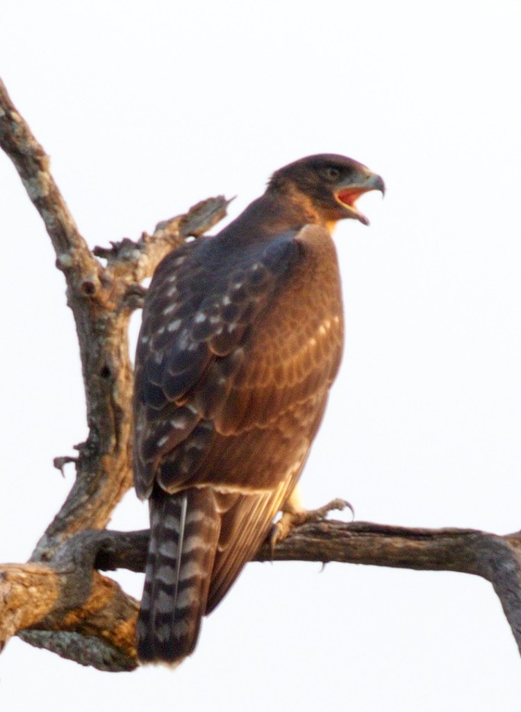 We get up early on our last day determined to find the Great Spotted Cuckoo and maybe the Hobby. We listened for calls where we were told they had been present – at the meeting of the S100 from Malelane and the main road north H4-2 to Skukuza. We give up after a while – no calls at all. So we head to look and see if there is anything interesting along the road to the S25. We cross the bridge and turn right towards Croc Bridge. The light is terrible for seeing silhouetted birds. I think I see a Falcon so we retreat to the main road to get a better look. It is the Great Spotted Cuckoo with the Eurasian Hobby close by. We were both happy and could not believe our luck.