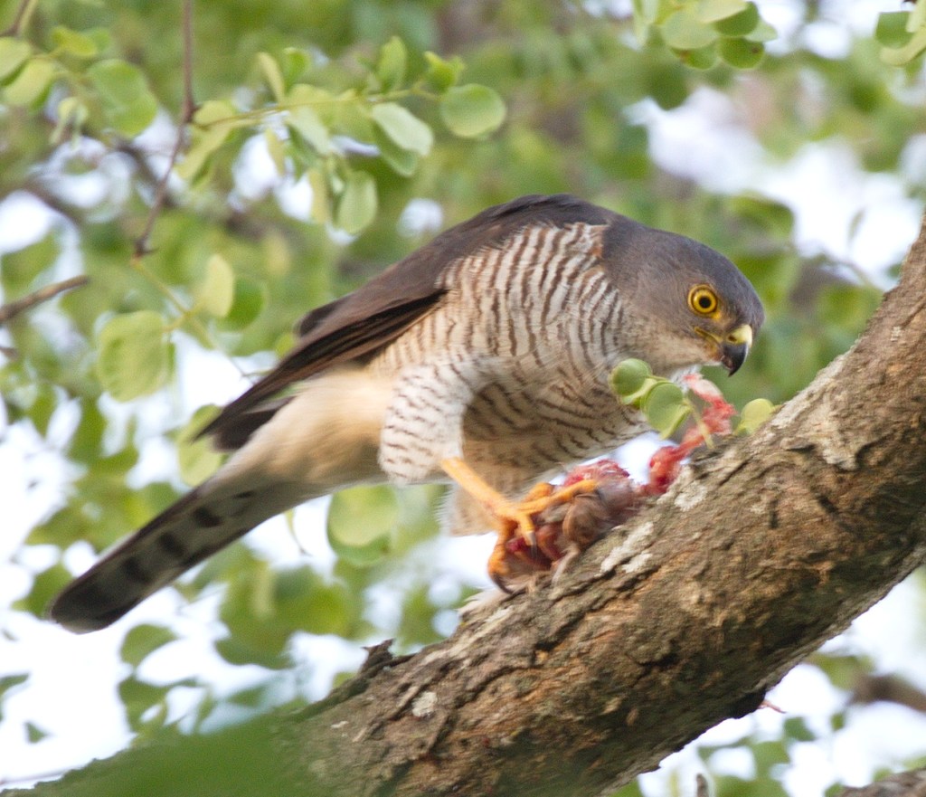 Of course we spent many hours wandering around the camp. At the main reception area overlooking the dam, there was a ruffle over our heads and a Little Sparrowhawk was seen flying away. But it did not go far. it have food in its claws but not eating. Looking around a juvenile was spotted. We were able to watch as the juvenile screeched away and the parent gave it food.