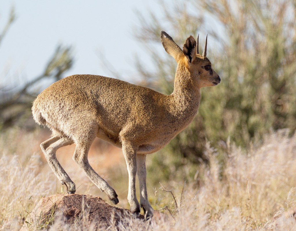 Mokala is notable for the variety of Antelope inhabiting the park. Apart from the more common Springbok, Klipspringers, Giraffe, Blue Gnu, Zebra, Duiker, Meerkats there are also the rarer Eland, Roan, Sable and Tsessebe. Of the big five there are few.