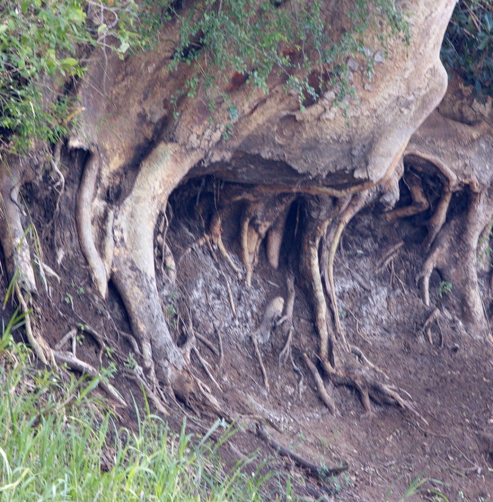 At the picnic site closest to Hluhluwe’s Memorial Gate, we noticed this strange looking root system of a tree hanging over the Hluhluwe river.
