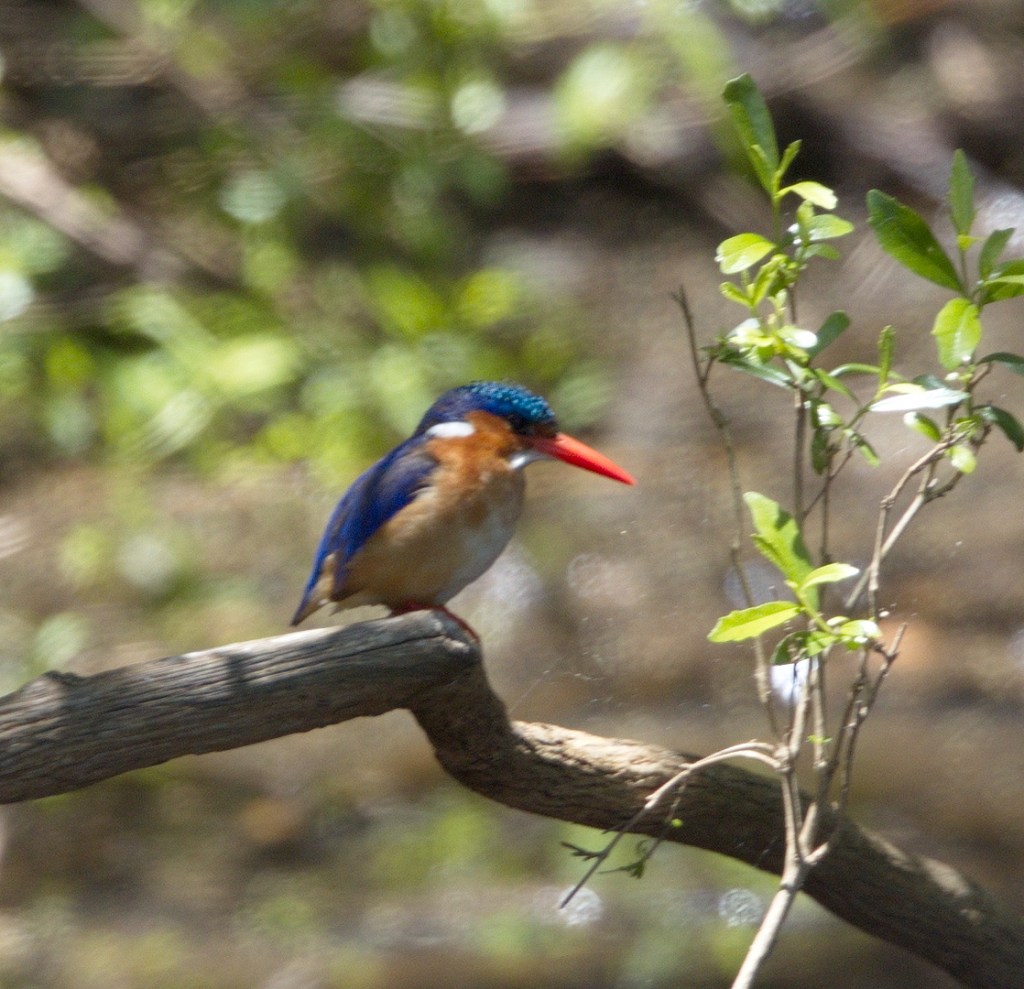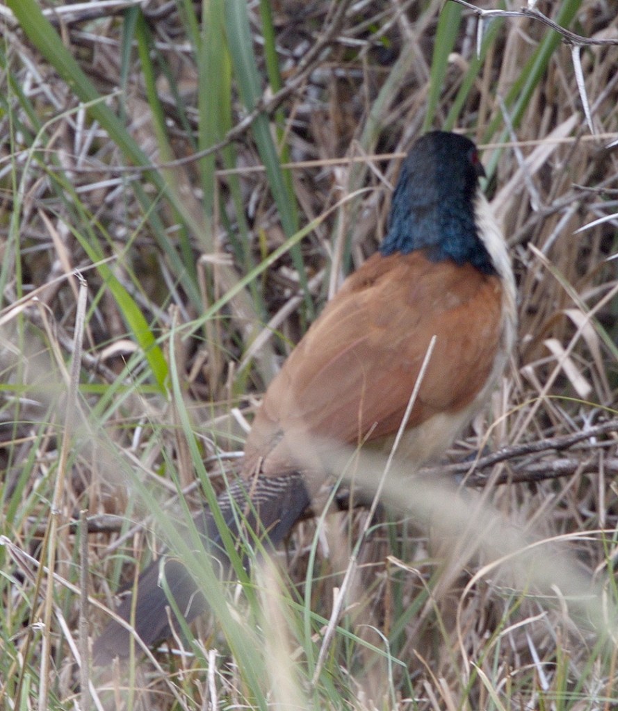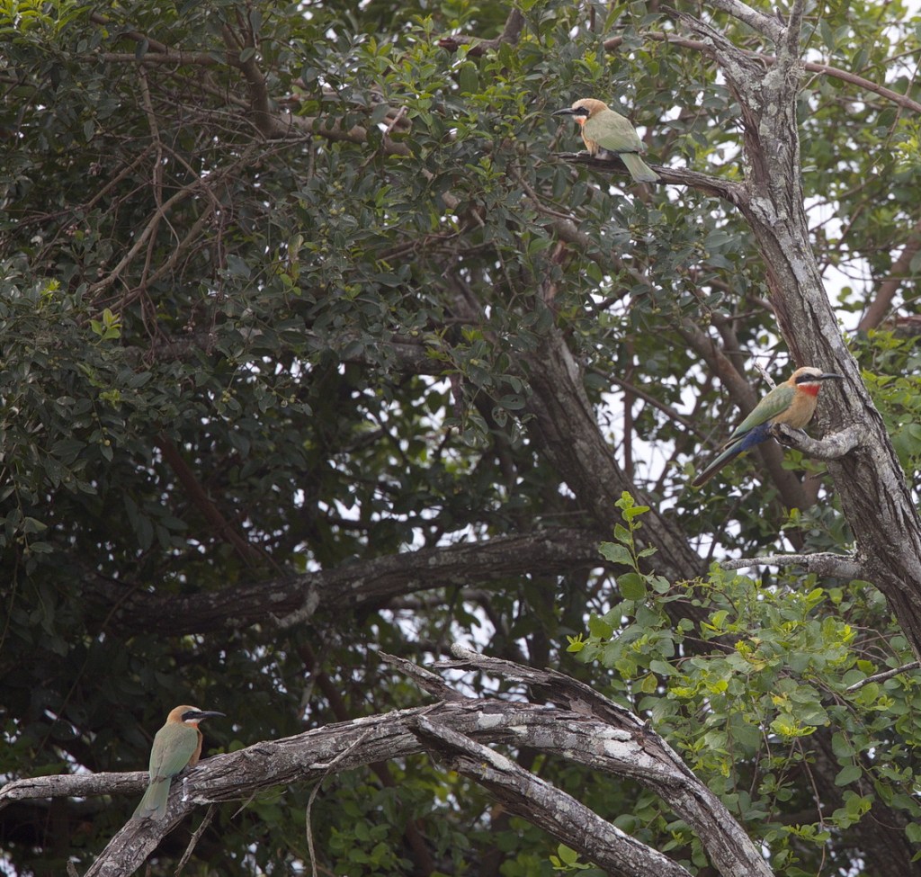 The Bonamanzi Game Park was empty. We were one of a very few not only campers but also chalet guests. We set up camp on our own in campsite 21 on the opposite side to the swimming pool. Between reception and the campsite we recorded 3 specials and another at the campsite – all heard. They were the Gorgeous Bushshrike, the Bananabird – Green Malkoha – the Eastern Nicator and then the Narina Trogon in camp. Quite a start for our bird list. We went on to see all of them except the Eastern Nicator but only fortunate enough to photograph one of them.