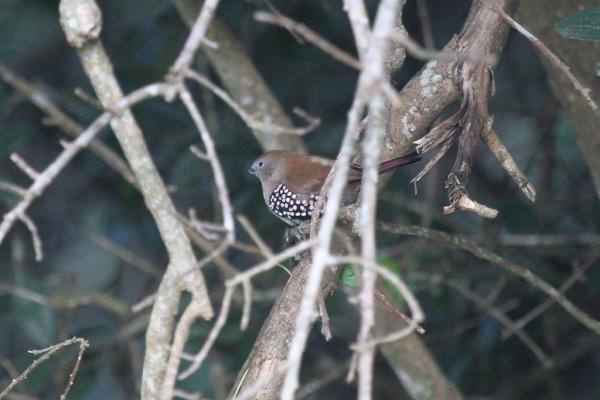 Pink-throated Twinspot – female, Khangela Lodge, Kuleni