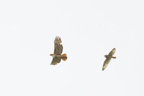Short-eared Owl bombing Red-tailed HawkJPG