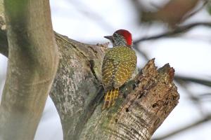 Golden-tailed Woodpecker – seen drumming like a Bearded Woodpecker