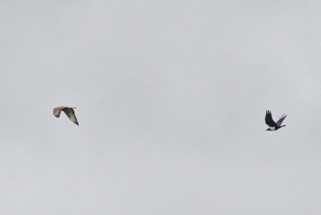 Pied Crows chased Steppe Buzzards and Yellow-billed Kites.